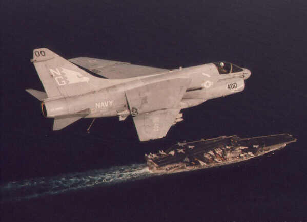 Vought A-7 Corair II över ett hangarskepp
